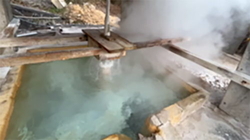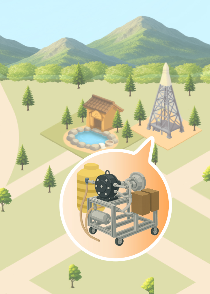 この研究では、現在では環境中に捨てられている温泉の熱を回収・利用し発電するシステムを開発しています。