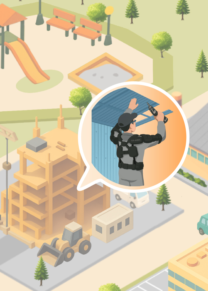 主に農業や建設業においては、長時間腕を上げ続けて行う作業が多く、腕や肩へ大きな負担がかかります。
